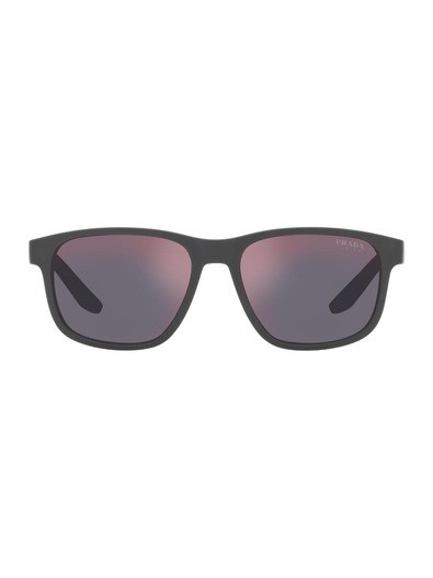 Sunglasses with a frame made of plastic in grey rubber and lenses made of polycarbonate in dark grey mirror red tuning